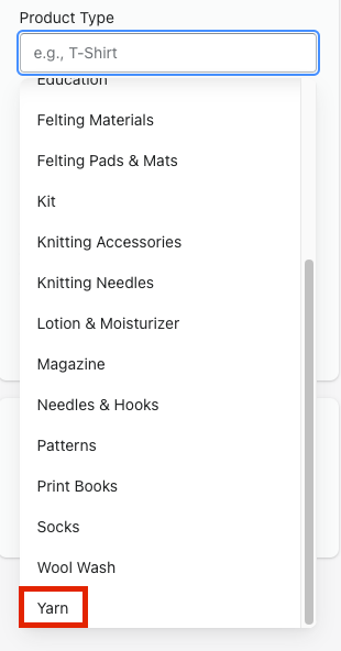 Once you select the yarn product type, it will be added into the All Yarns collection.
