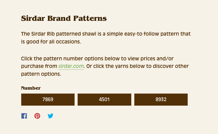 We created a specific product page template for the patterns where the variants link out to a different URL and cannot be purchased on the Auntie Zaza store directly
