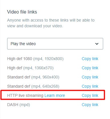 You will see a few different options of file links. HTTP LIVE STREAMING is the link you need to copy