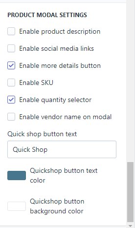 - Quick shop button text -> will show the text for the quikcshop button on collections
