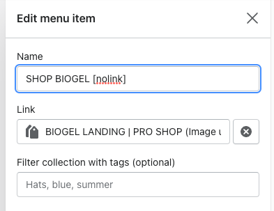 shopifyHow to make menu non-clickable in navigationHow to make menu non-clickable in navigation In the navigation section of shopify, go to your main menu ADD [nolink] next to the menu link name