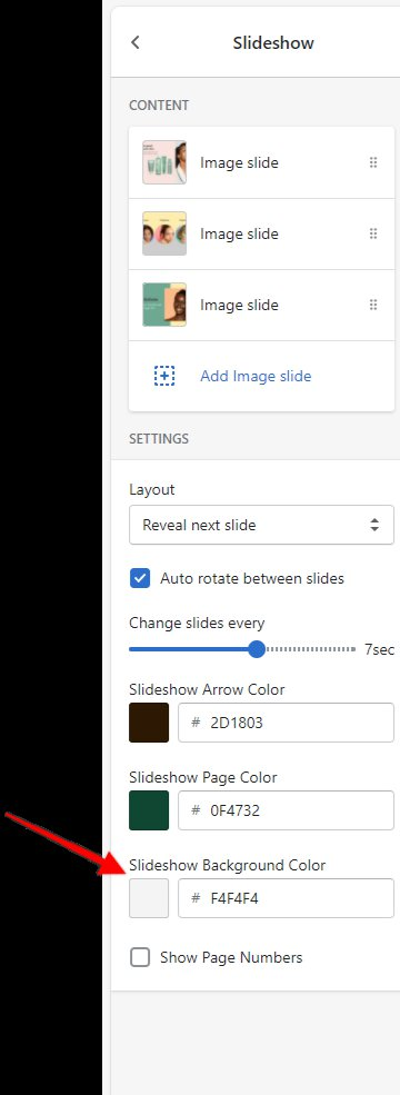 The color of the slideshow background is a setting here: