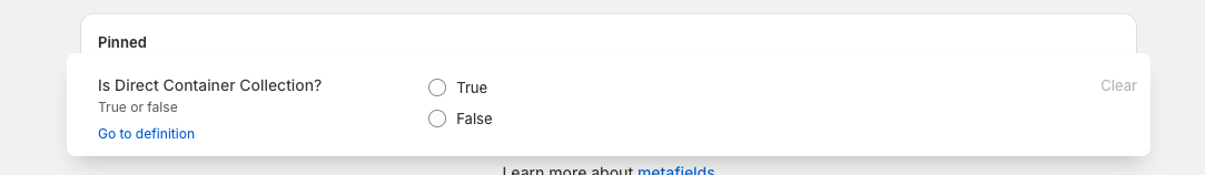 If you scroll down, you will see a metafield called 'Is Direct Container Collection?"