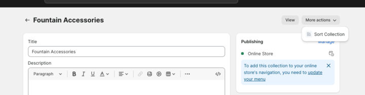 Select the Collection desired, then MORE ACTIONS / Sort Collection