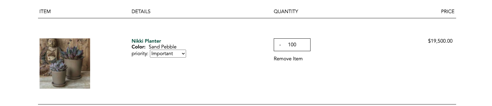 - When Items are added to the cart, you will now see a direct container progress bar. This will show how close you are to filling a 40 ft container. $12500 is the middle. $25000 is full.
