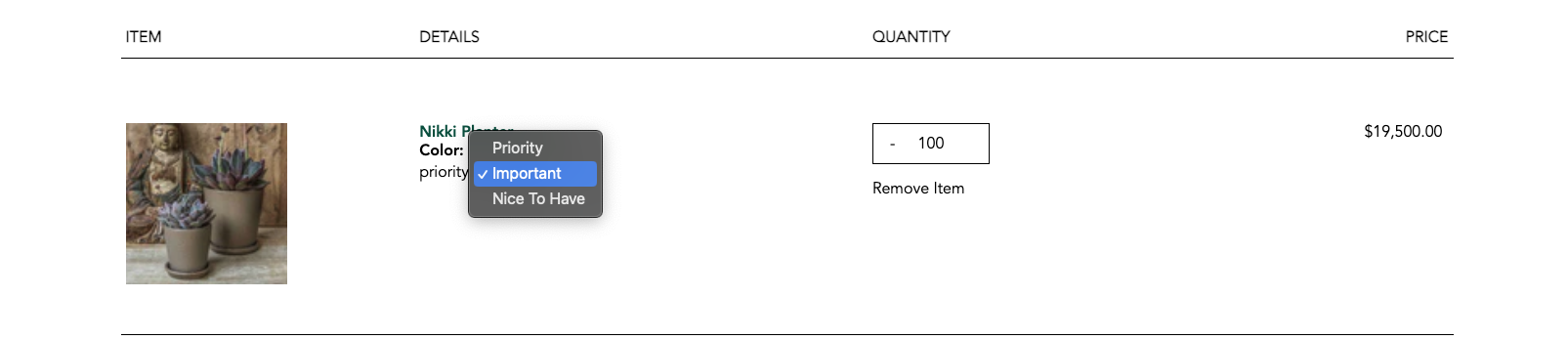 - Next you will see a new dropdown called priority. This will determine the priority order in the crate. Options include Priority (A), Important (B), Nice To Have (C). After the priority is change, the button is disabled, the new priority is set and the cart will reload.