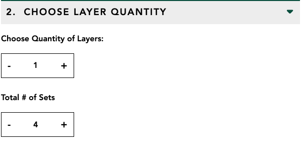 - Layer qty and Total # of sets are linked together. Changing one will always change the other. The top one will always iterate by 1. The bottom one will iterate by the order_inc metafield value. Defaults to 1 if blank or set to 0.