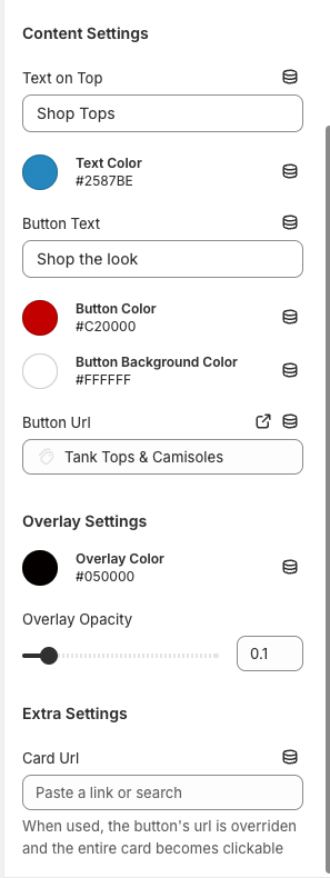 Card URL - this links the WHOLE image instead of the button. NOTE - if there is a link entered here, it takes priority over the button link. This is best used for when you don't want to add a button, just have the whole image linked.