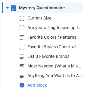 To edit the questionnaire, find the mystery box product when you open the customizer.