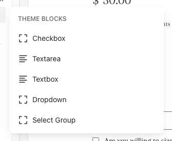Select Group - this is a multiple option checkbox block where the use can select more than one option
