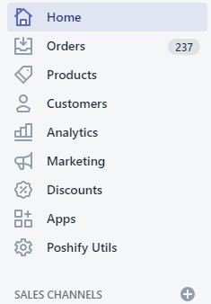 - Poshify Utils app will be located in the Shopify admin panel under apps