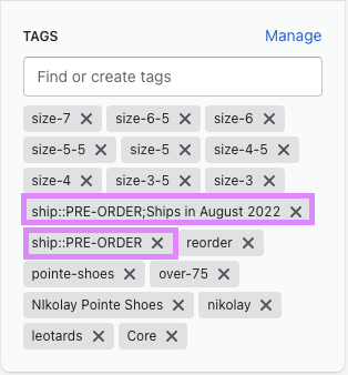 Any item that you want to make a preorder item, HAS to be tagged with: