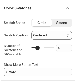 Step 3: Style the swatches. Select the swatch shape and poisitoning in the theme settings of the theme customizer