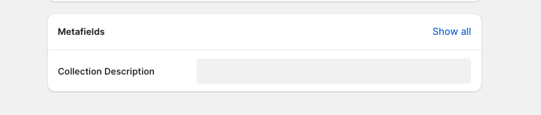 Enter the text in this metafield and the text will display under the collection title on the collection page.