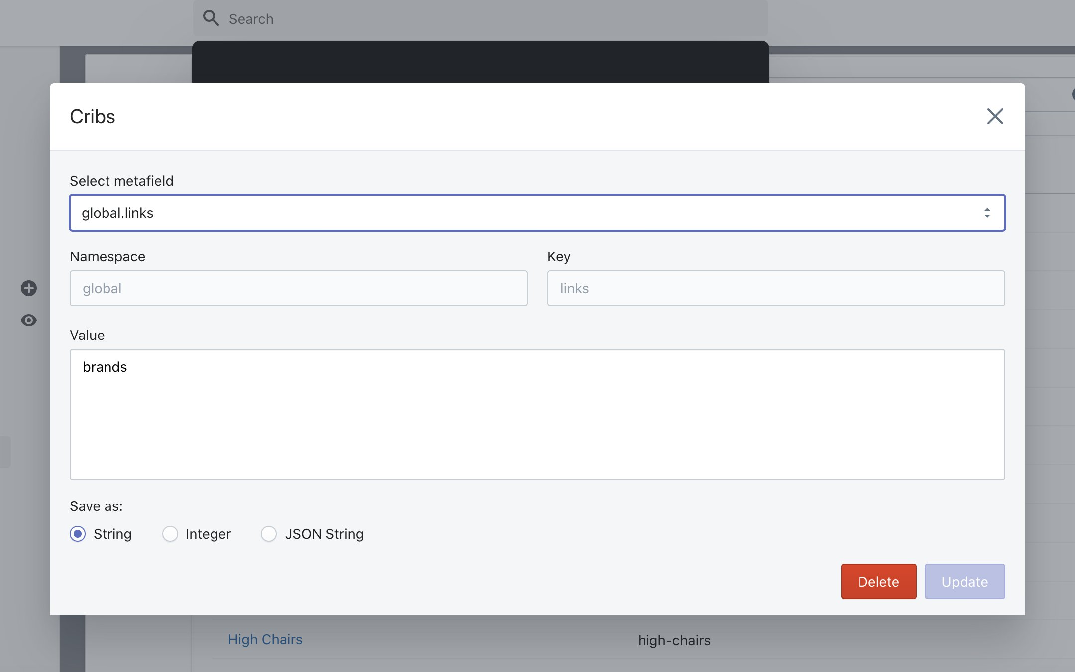 Create a new metafield