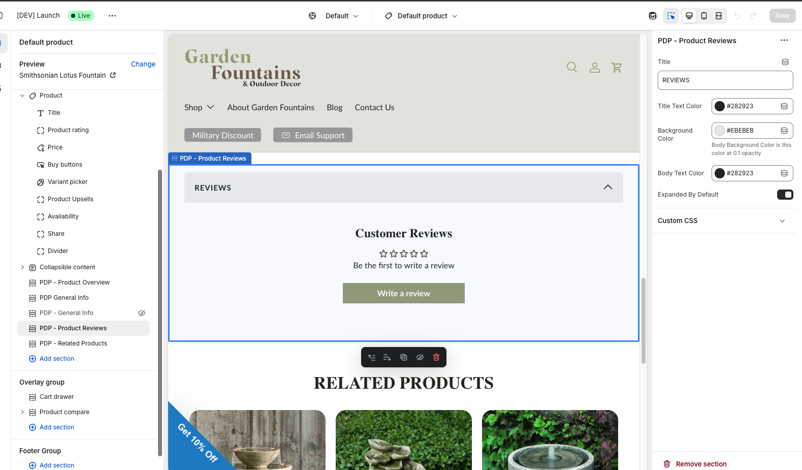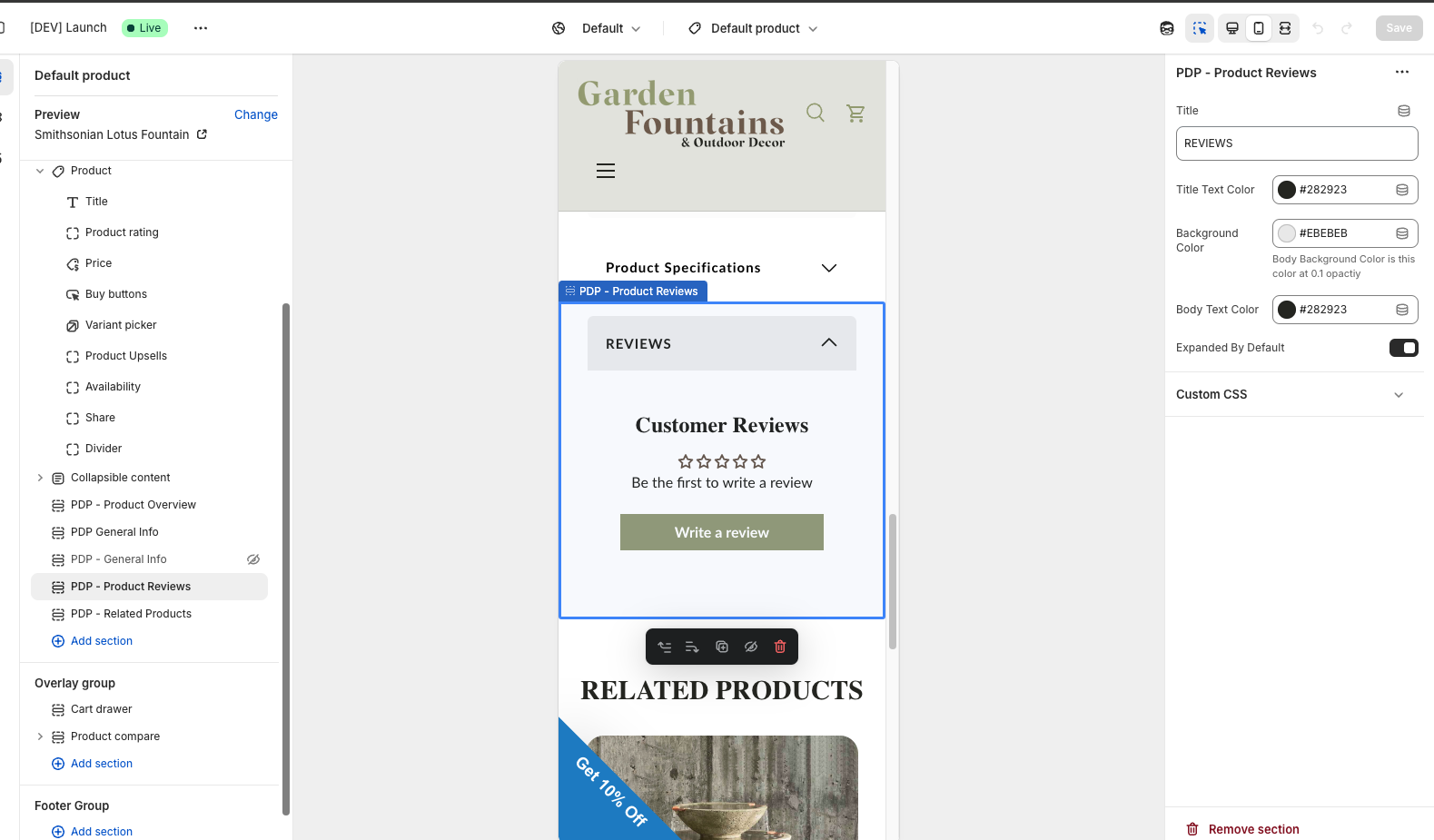 This section is used to render the product reviews from Judgeme Product Reviews App. To configure anything related to the reviews themselves, you must use the Shopify App.