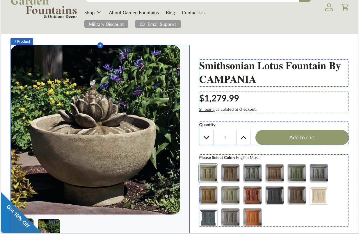 | Selector style | Determines if the product options use a dropdown or swatches | Buttons |