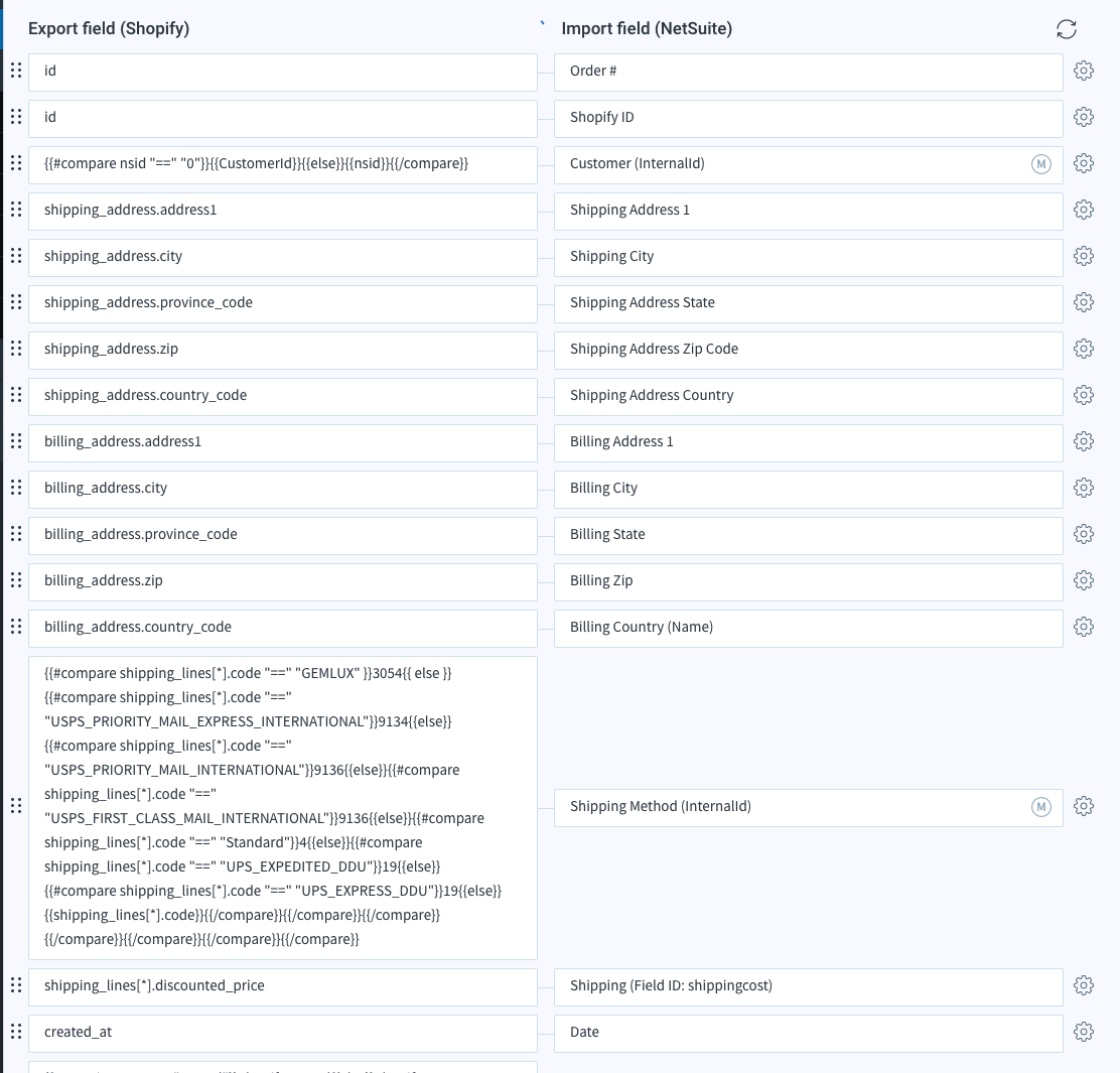 If the customer is not filtered out, we are going to insert into NS using the following fields: