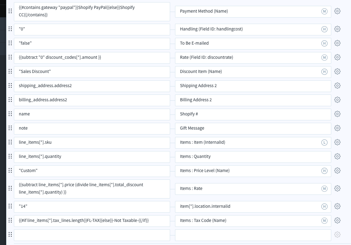 Items: Tax Code (note, the colon in the NS Field indicates it is a line property)