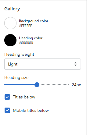 Gallery Section Settings:
