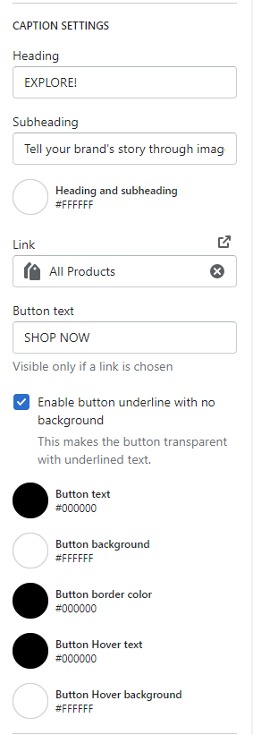 Enable button underline checkbox = you have the option to choose a button where it is transparent with underlined text. Checked = enabled, unchecked = disabled