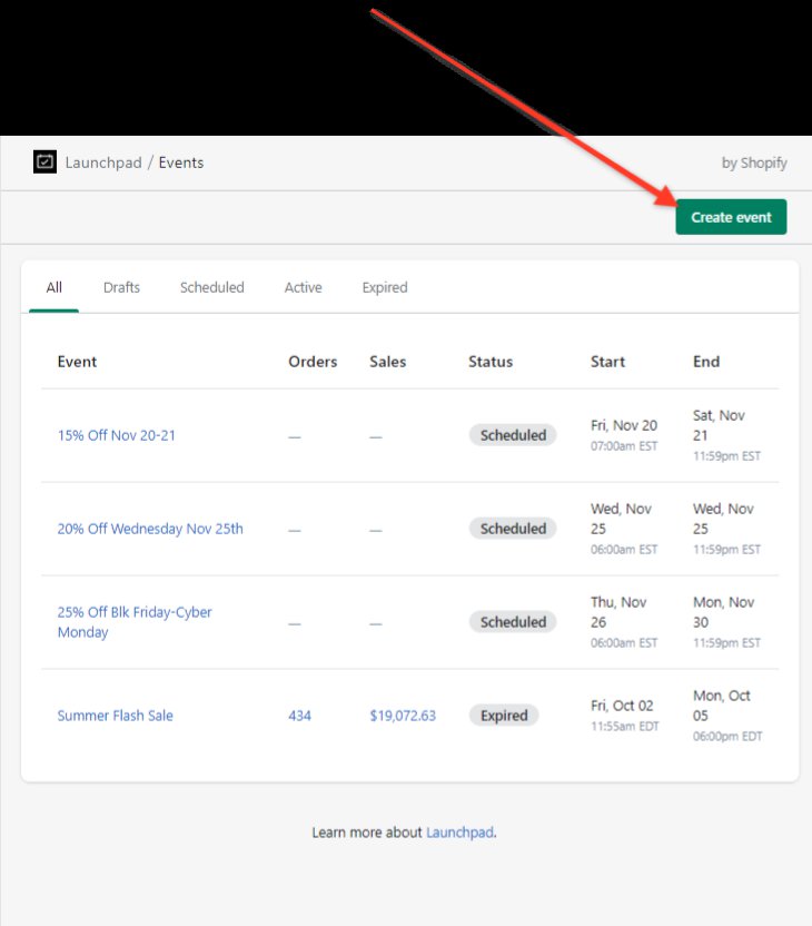- Click on the button that says Create event located in the top right hand corner of the page.