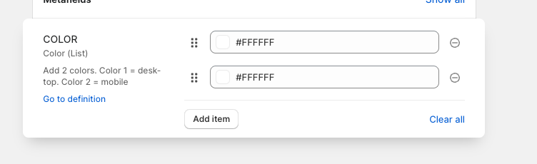 It will then bring you to the metafields app. This is where you will add the desktop & mobile image. Then enter the text you would like to be shown on top of the image - collection heading & description.