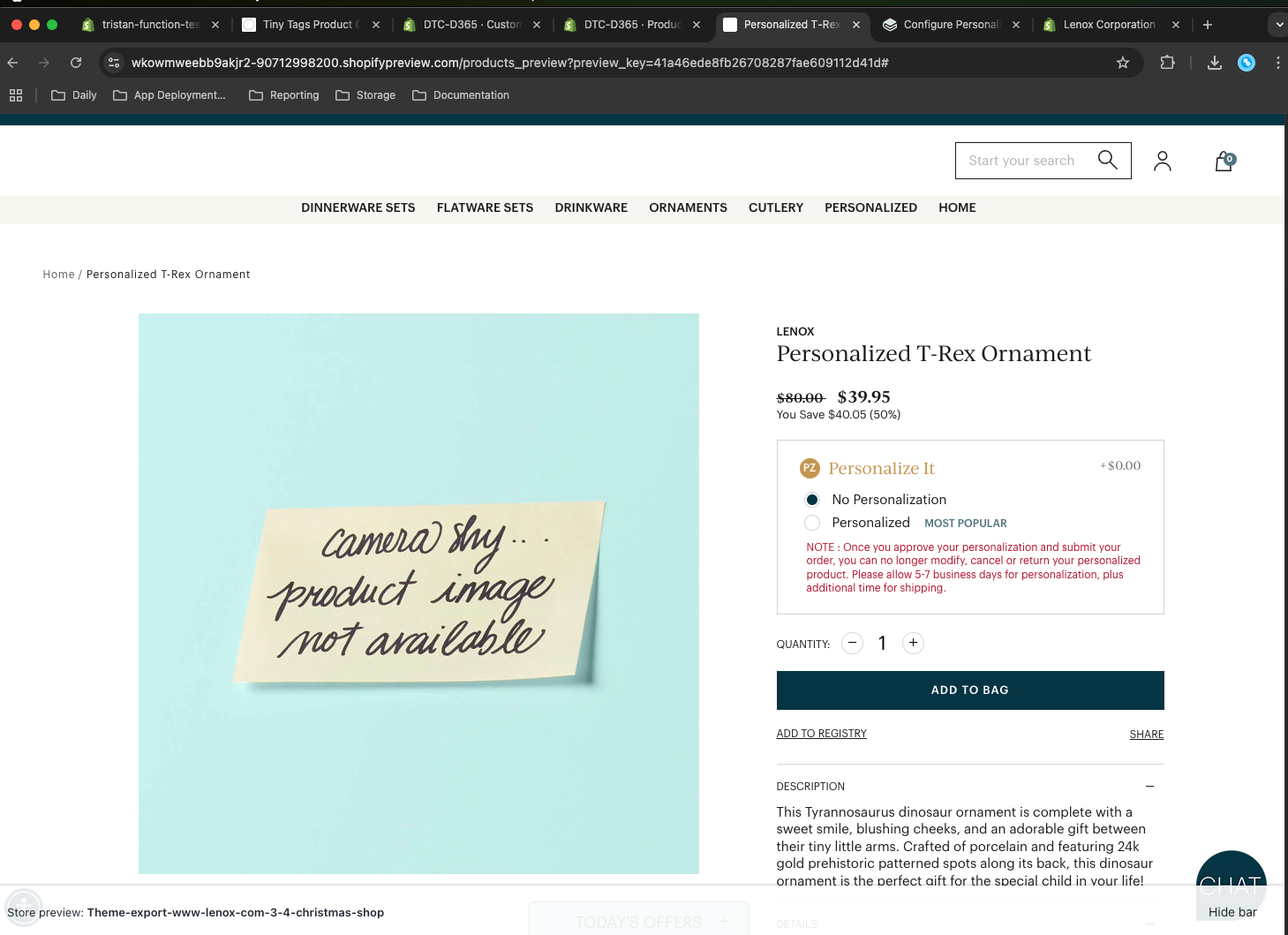 "Personalize" - Usage: Use this tag to categorize products that offer personalization options, ensuring that only these products display personalization features.