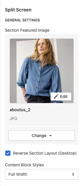 Reverse Section Layout - reverses image to show on the left or right
