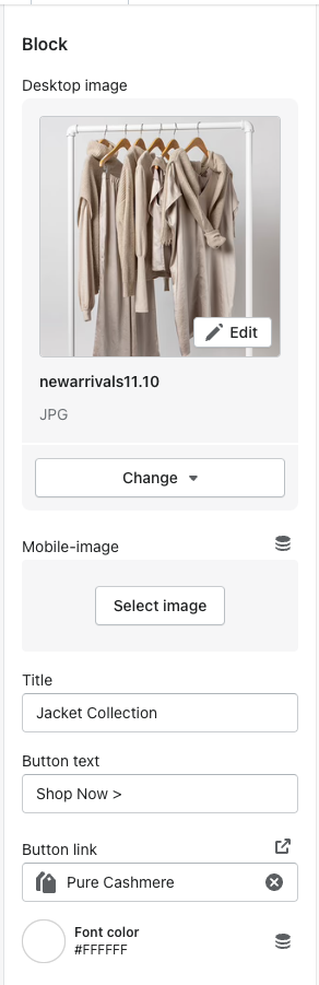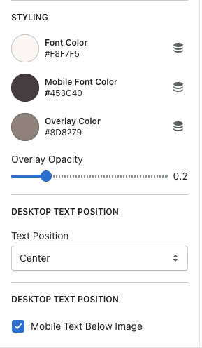 Images - you have the option to specify a desktop image and a mobile image. If no mobile image is added, it uses the desktop image.