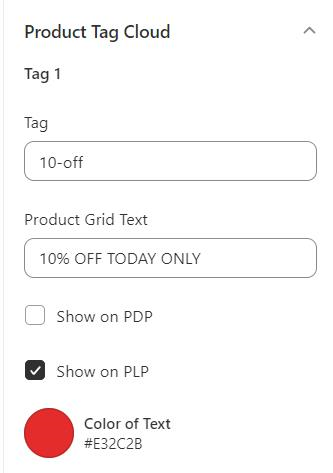 You will be able to add the specfic tags & text here that you want displayed on the PLP & PDP. You also have the option to just show it on one or the other.