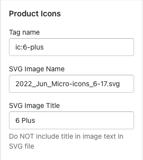 SVG Image Title - this is where you will enter the text that will output on the PDP underneath the icon