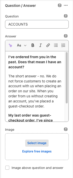 Checkbox = can place the image above the answer, if you wanted to. Only applies when checked.