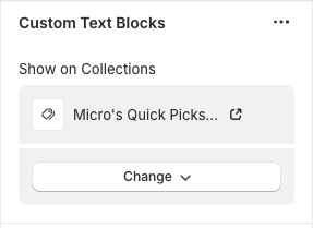 When you click on the custom text blocks section, this is where you can choose which collection(s) you want these text boxes shown on