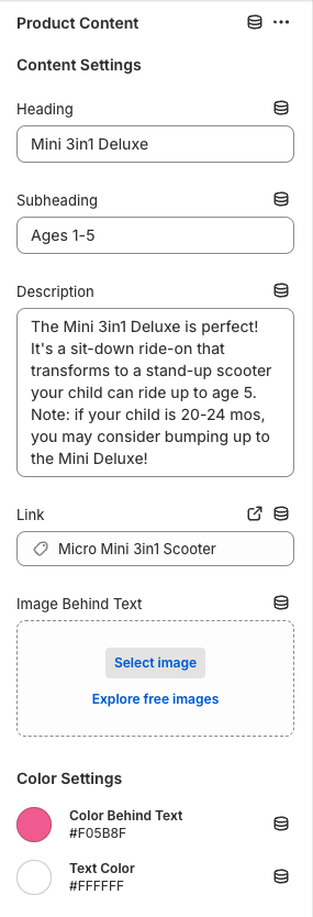 Image Behind Text = You have the option to add an image where the text will display on top of the image in the block