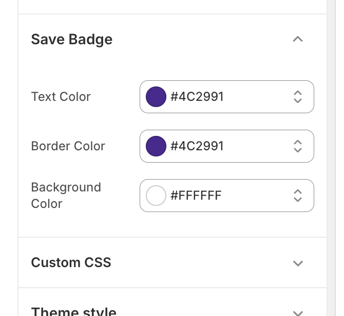 You can customize the save badge color in the theme settings under Save Badge. This badge appears on products in collection pages when they are on sale.