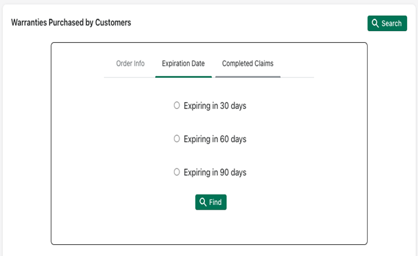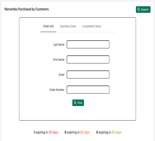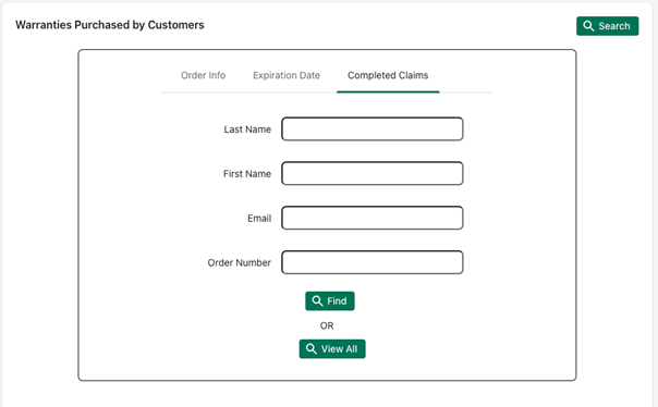 You can search by order info, expiration data or completed claims.