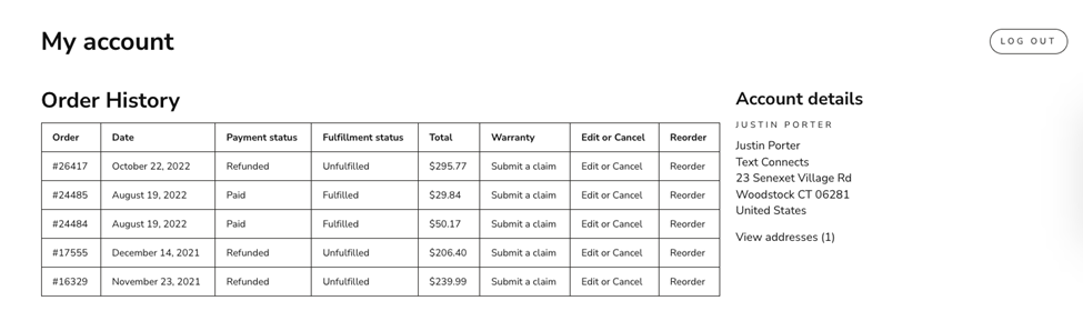 Customers can claim the extended warranty by logging into their account and clicking “Submit a Claim” in the row of the order the extended warranty was purchased in.