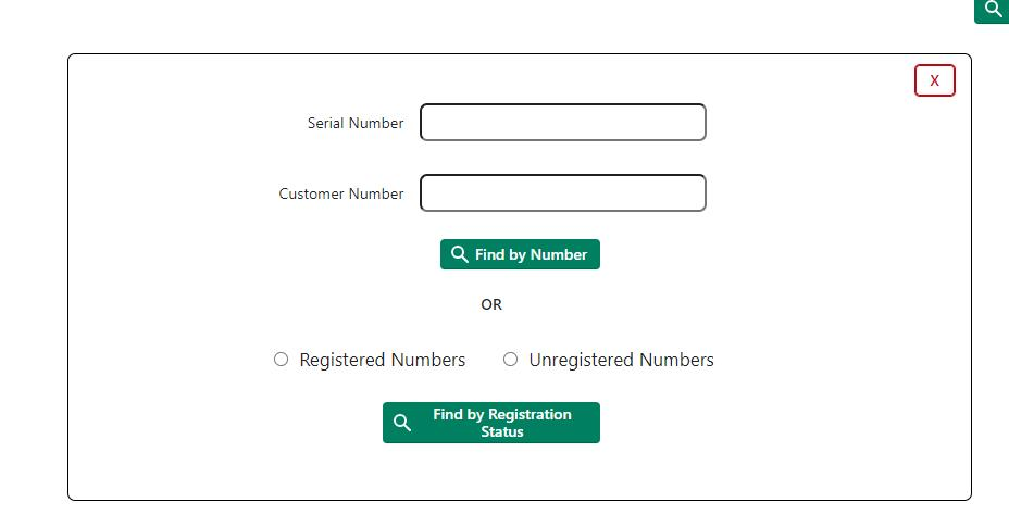You can search the table by customer number, serial number, or both. Or you can search by registered serial numbers and unregistered serial numbers.