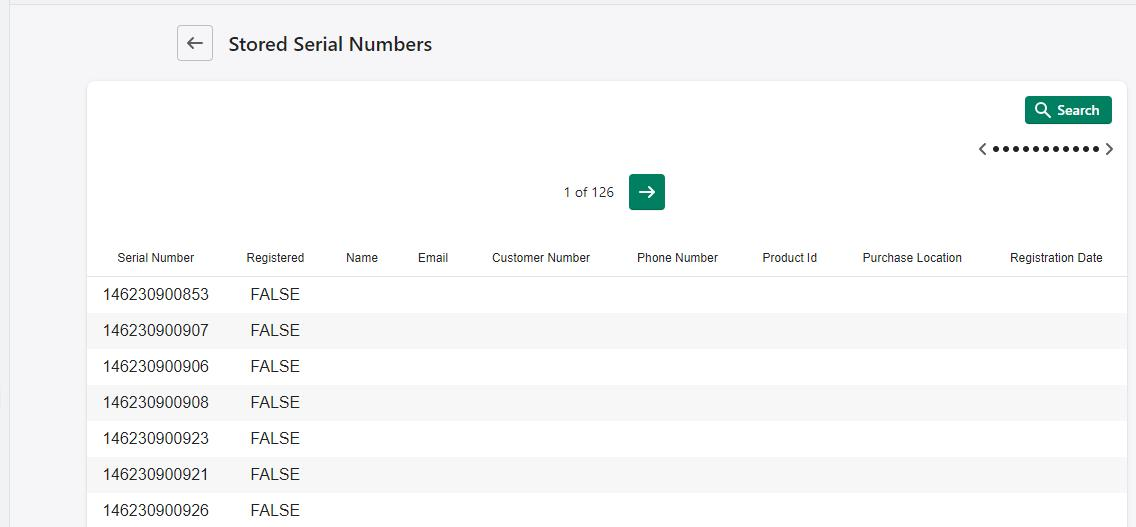 All uploaded serial numbers and registration information will display in the table.
