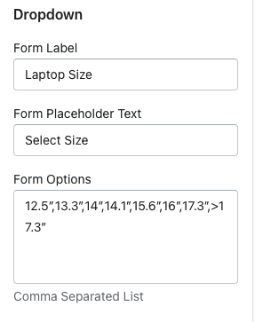Form Placeholder Text: The first option in the dropdown before a selection is made