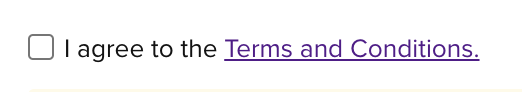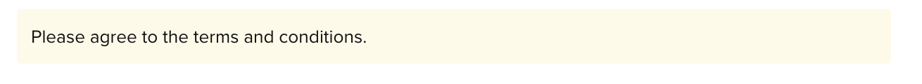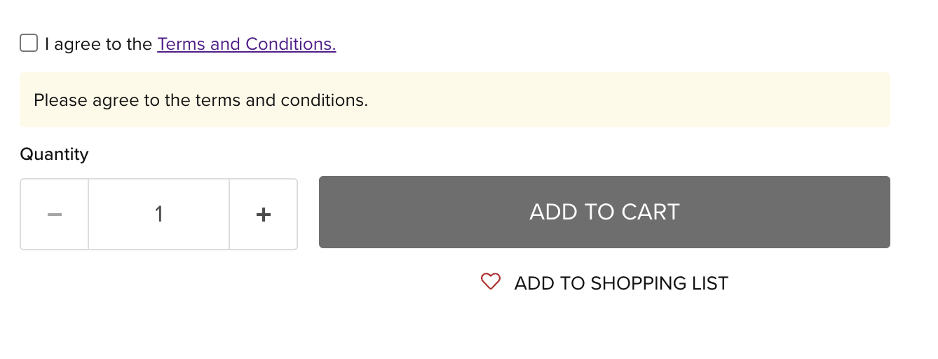 - PDP Error Notice Text: This message will appear as an error if the Terms & Conditions checkbox is not checked.