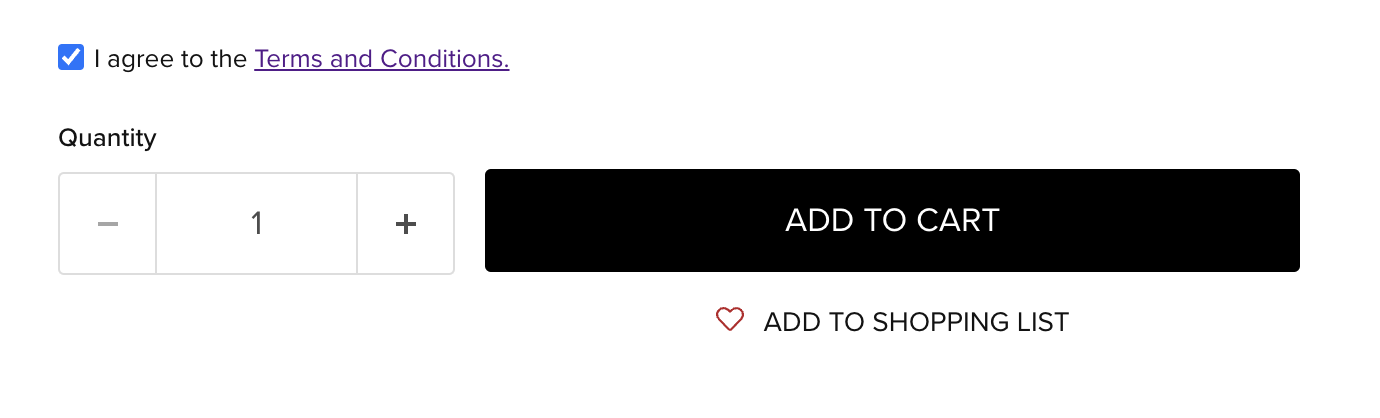 On the Product Detail Page (PDP), you can enable a feature that disables the "Add to Cart" button until the customer checks the Terms & Conditions checkbox.