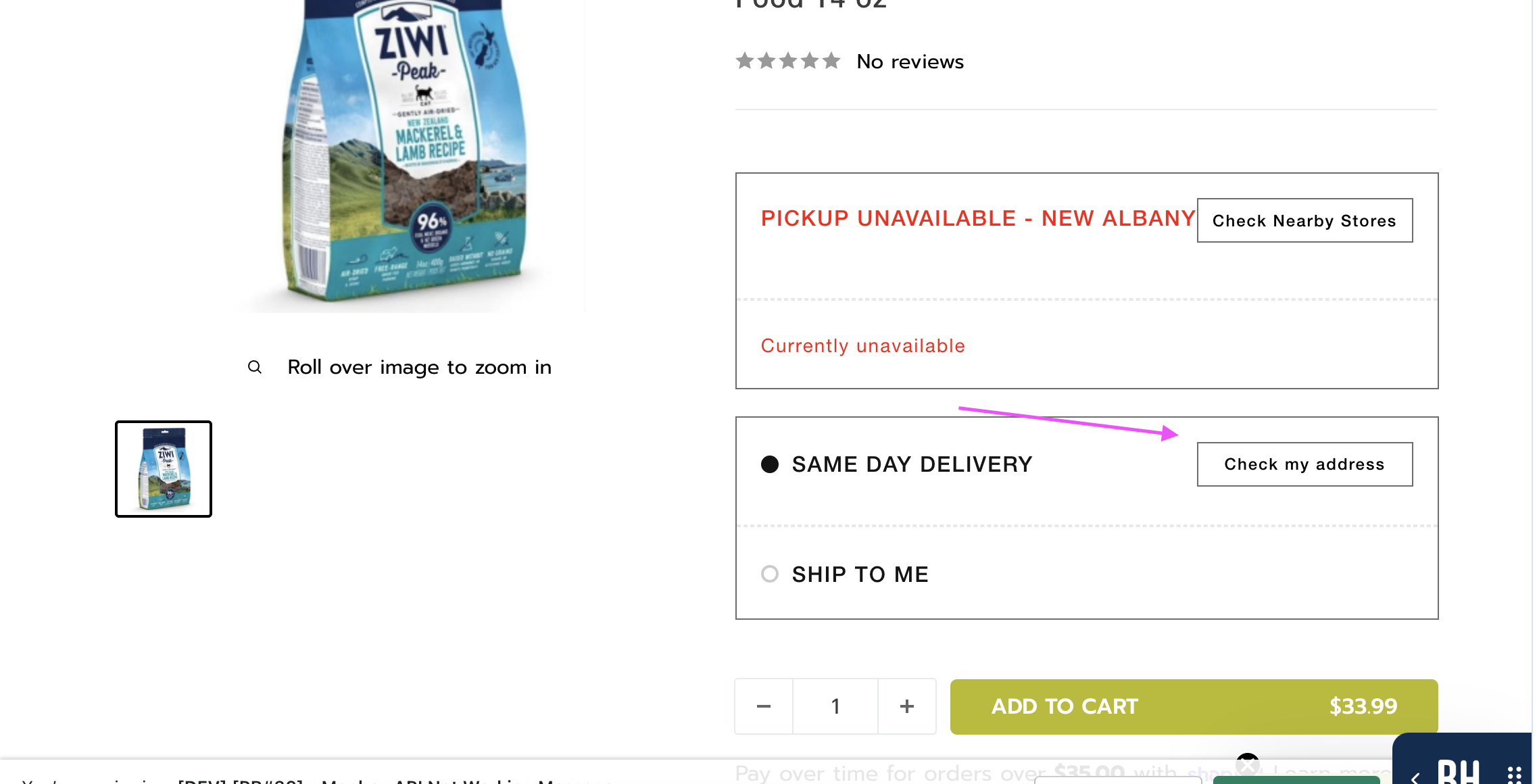 NOTE: If the mapbox access key is blank, the check my address button on the PDP will not show.