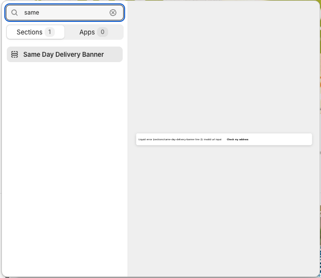 Add the section by clicking Add a Section on the customizer and selecting Same Day Delivery.