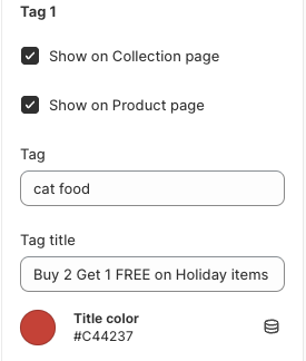 Tag - the tag from the product that will allow this messaging to show