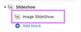 Go to the SLIDESHOW Section - click the ImageSlideshow block