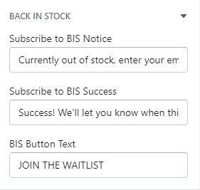 Note - on any variant / product, the "continue selling when out of stock" checkbox cannot be checked in order for the back in stock form to show. If it is checked, then it wouldn't be considered out of stock