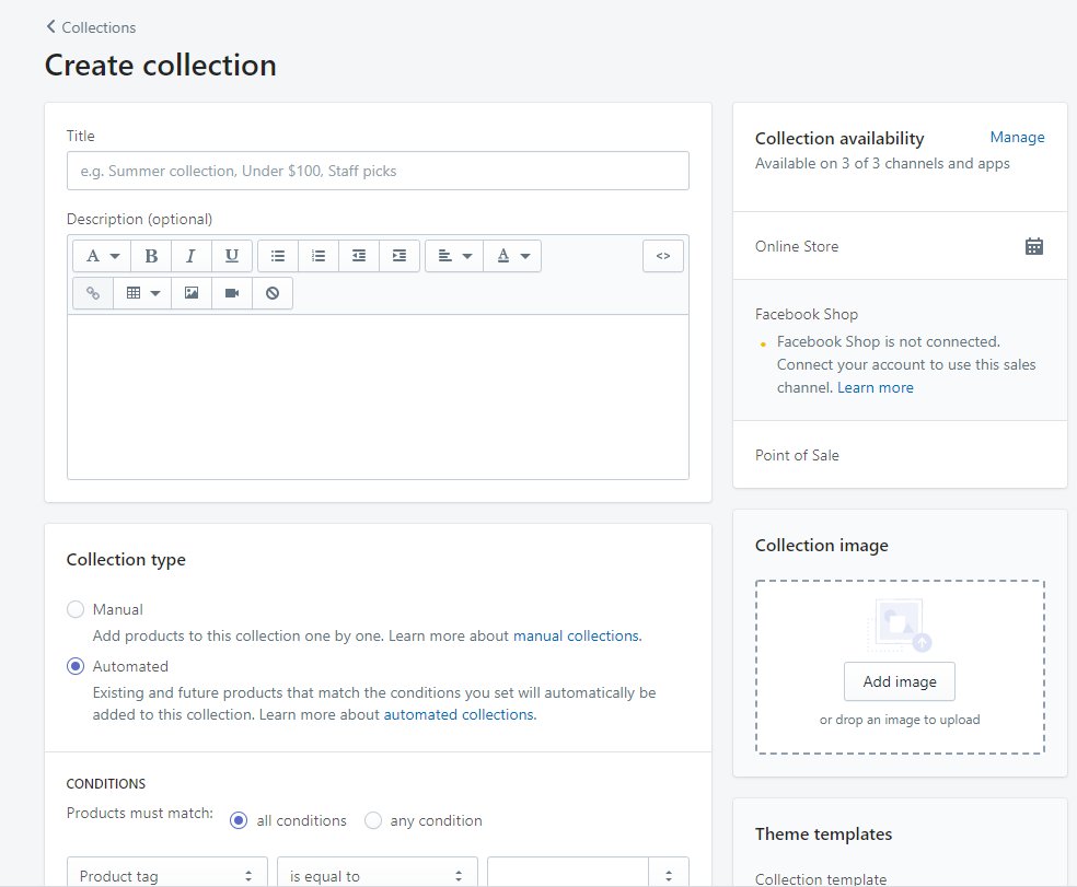 - From the drop-down menu under Products in the admin panel click on collections
