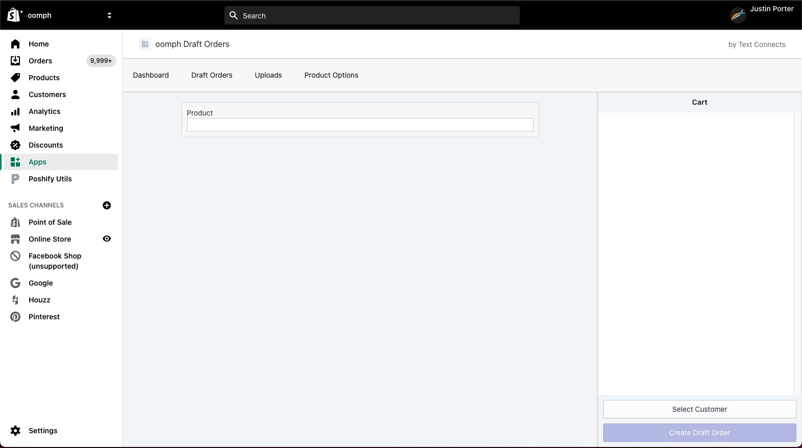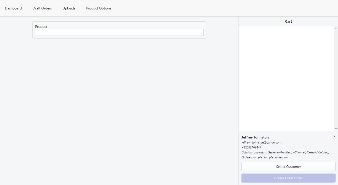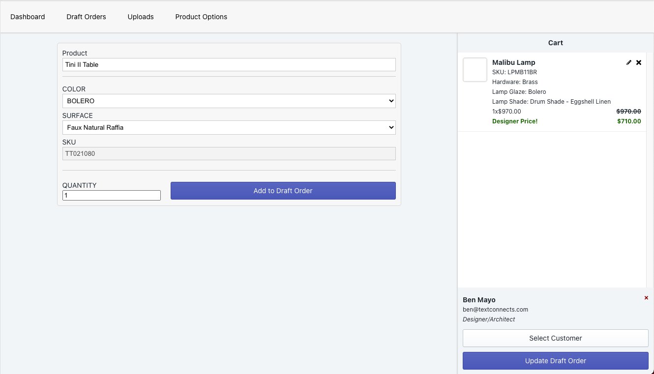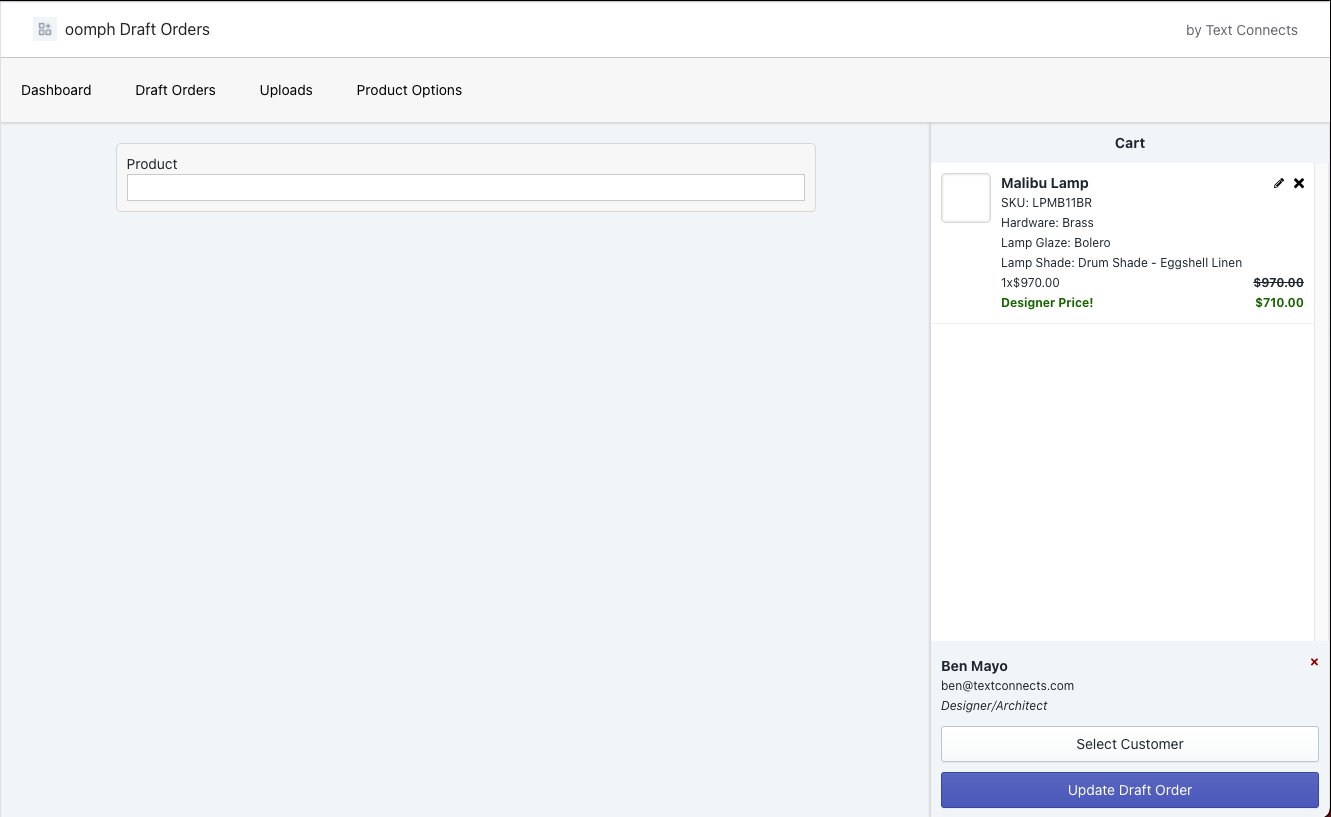The draft orders functionality allows you to create new draft orders for your customers using the product options managed by the oomph App Engine. You will be able to create new draft orders as well as edit existing draft orders.